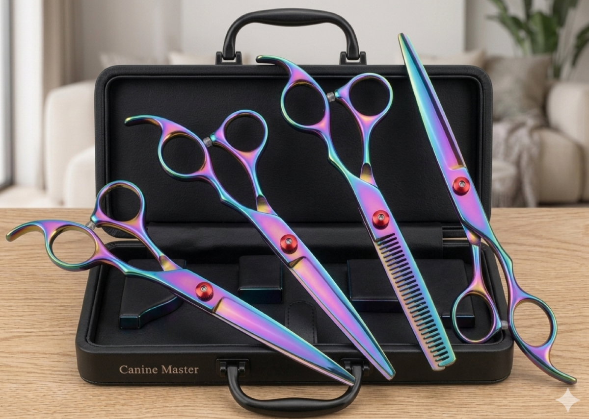 ✂️ Precisión en cada Corte: Incluye tijeras rectas, curvas y de entresacar para manejar desde las zonas más sensibles (ojos y patas) hasta el volumen general.